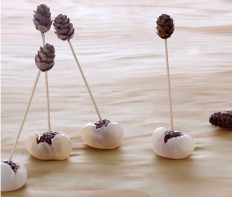 Of het nu gaat om decoratie of palen, er wordt gebruik gemaakt van alle natuurlijke producten.De decoratie is afgeleid van de kleine dennenappels op de eekhoorns en vervolgens met de hand verlijmd.100% handgemaakt, 100% natuurlijk.Breng de frisheid van de natuur naar je tafel.